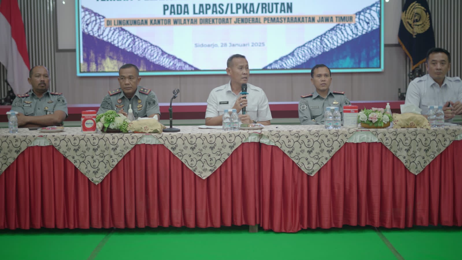 Metro24, SURABAYA – Dalam upaya meningkatkan kualitas pelayanan bagi Warga Binaan Pemasyarakatan (WBP), Kantor Wilayah Direktorat Jenderal Pemasyarakatan Jawa Timur menggelar kegiatan pengarahan terkait pelaksanaan penyediaan bahan makanan di Lembaga Pemasyarakatan (Lapas), Lembaga Pembinaan Khusus Anak (LPKA) dan Rumah Tahanan Negara (Rutan), Selasa (28/1).