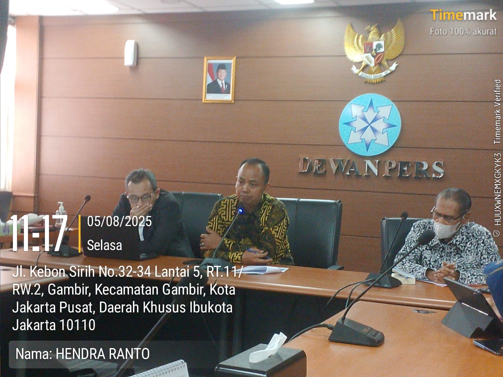 Dan Melihat Apakah bagiannya pak Jul ini sudah melakukan konfirmasi tetapi tidak bisa dihindari oleh upaya konfirmasi jangan tadi saya sudah sampaikan Kemudian yang kedua kita juga sudah menyampaikan bahwa kondisi perkembangan pers kita saat ini tadi sudah sudah kita sampaikan dan yang terakhir terima kasih banyak atas masukan-masukan dan sharing yang disampaikan oleh teman-teman kita di dewan pers ada beberapa poin yang akan kita catat dan akan dijadikan pertimbangan oleh kita itu saja dari saya terima kasih atas segalanya.