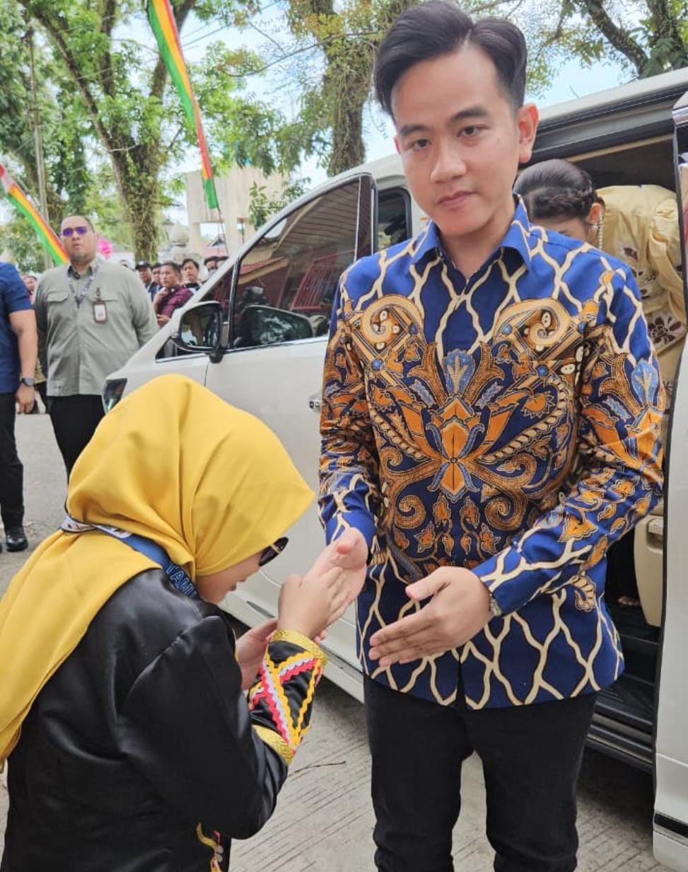 Dengan berani Faiza melambaikan tangan, seraya menyapa Wapres Gibran yang baru turun dari mobil Alphard warna putih .