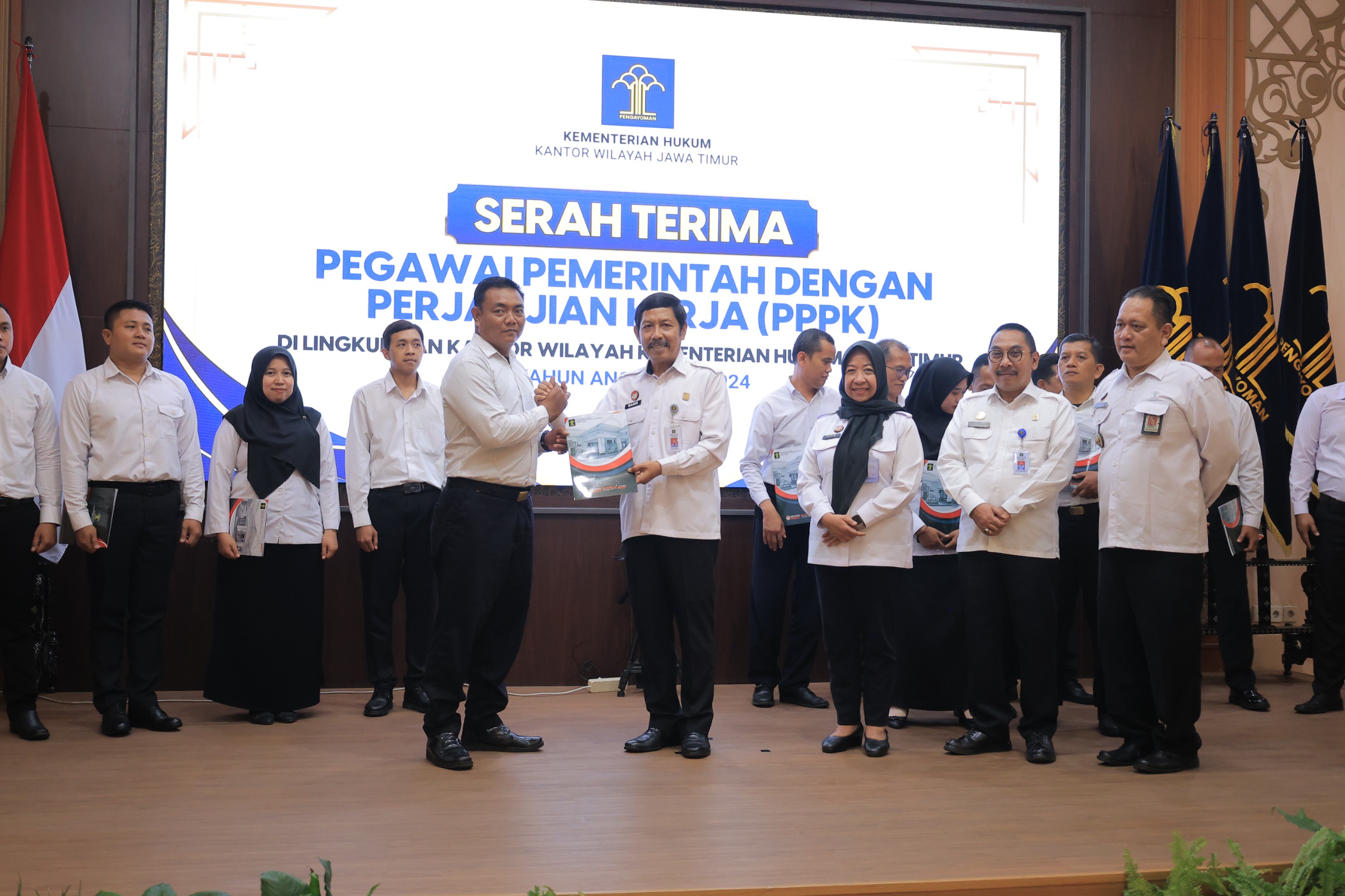 Kepala Kanwil Kemenkum Jatim, Haris Sukamto menegaskan bahwa pegawai yang menerima SK PPPK bukan merupakan pegawai baru, melainkan tenaga honorer yang selama ini telah lama mengabdi di lingkungan Kemenkum Jatim. Dengan adanya pengangkatan ini, jumlah sumber daya manusia di Jawa Timur tidak bertambah, namun status baru tersebut diharapkan mampu mendorong peningkatan kualitas kinerja pegawai.