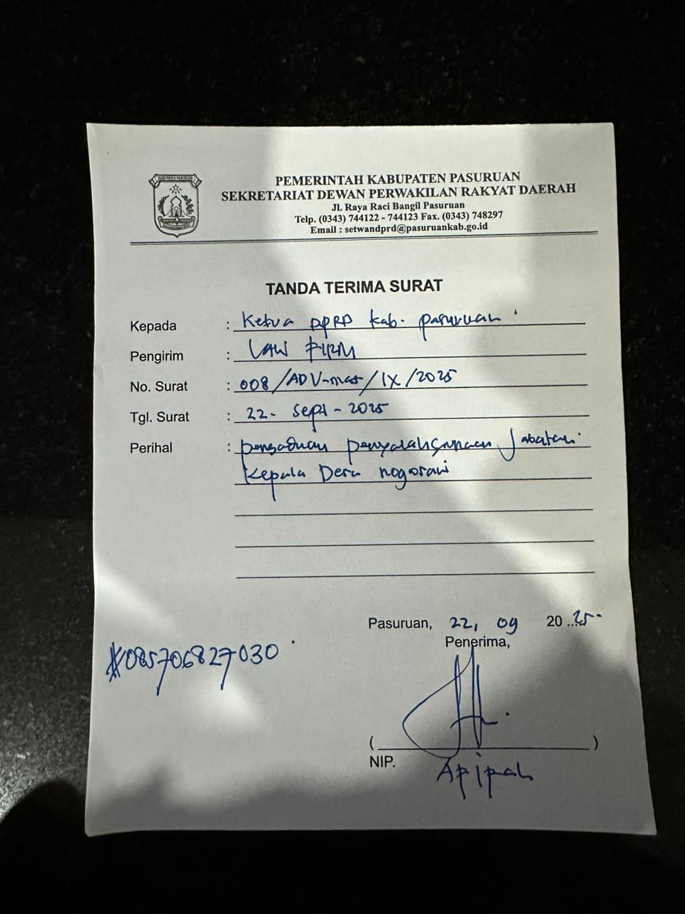 Karena laporan di tingkat kabupaten belum juga membuahkan hasil, Arif akhirnya melangkah lebih jauh dengan membawa kasus ini ke Kantor Gubernur Jawa Timur. “Sudah dua kali kami sampaikan ke Kabupaten Pasuruan tanpa respons. Maka kami putuskan melaporkannya langsung ke Gubernur Jawa Timur,” tambahnya.