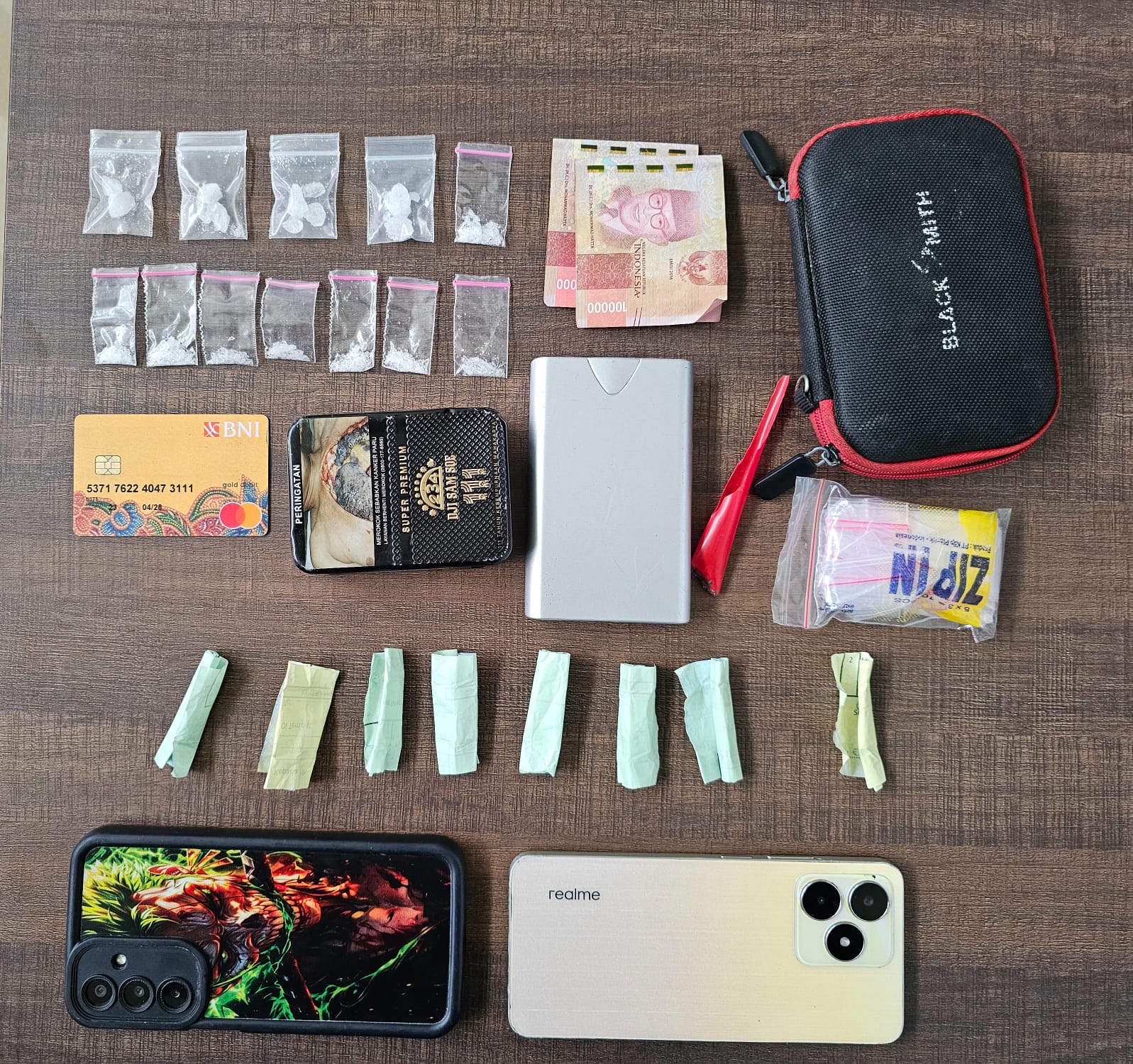 Selain itu, petugas juga menyita sejumlah barang bukti lain, satu kotak rokok berisi 12 paket sabu. Delapan potongan kertas pembungkus. Satu dompet berisi uang tunai Rp200 ribu, timbangan elektrik, dan plastik klip kosong. Satu sekop kecil dari sedotan.