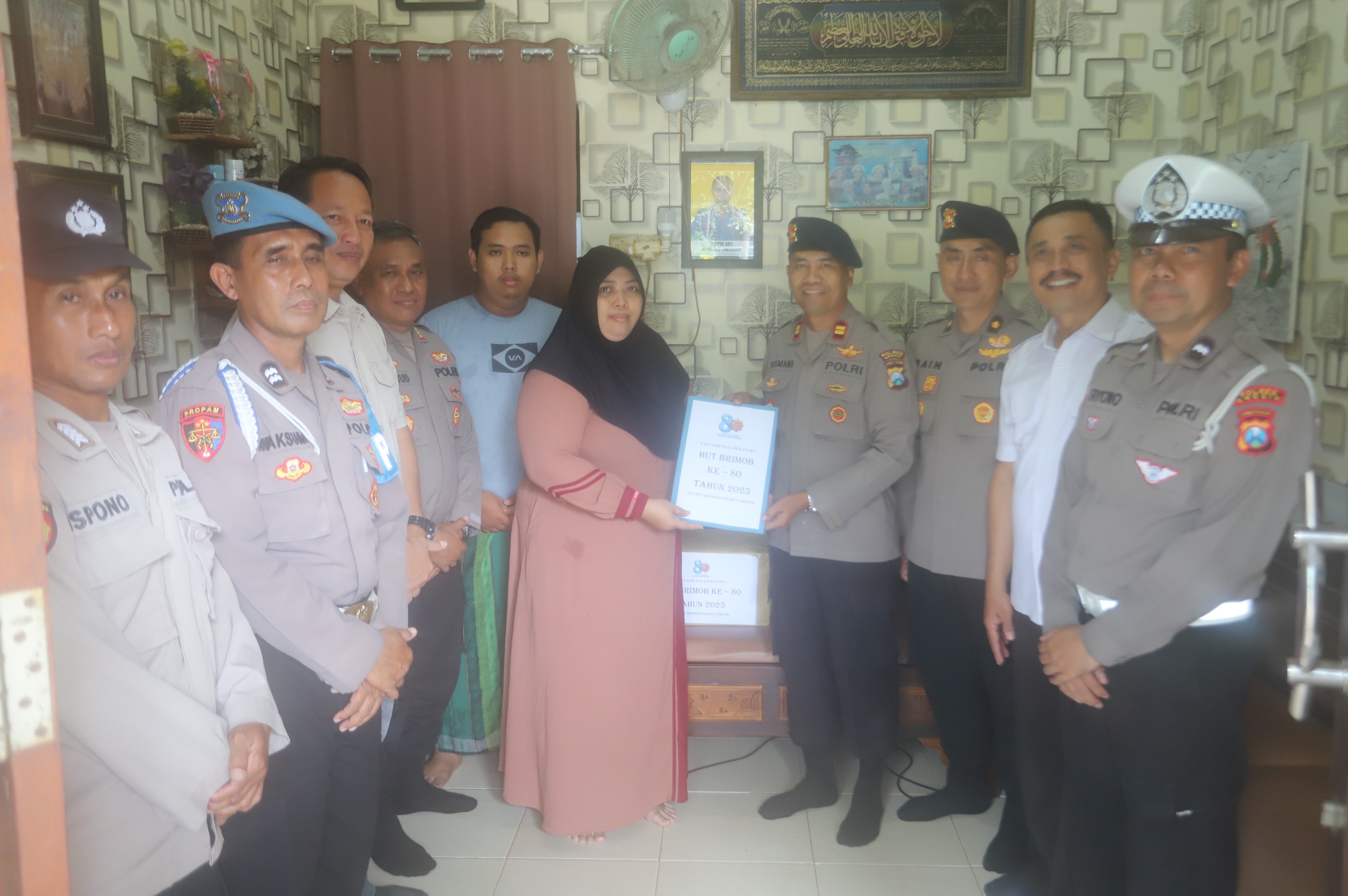 Istri almarhum Aipda Syaiful Arif dan Bripka Purnawirawan Agus Wahyu menyambut hangat kedatangan rombongan. Suasana penuh haru namun sarat kehangatan menjadi bukti kuatnya jiwa korsa dan semangat kekeluargaan di lingkungan Polri.