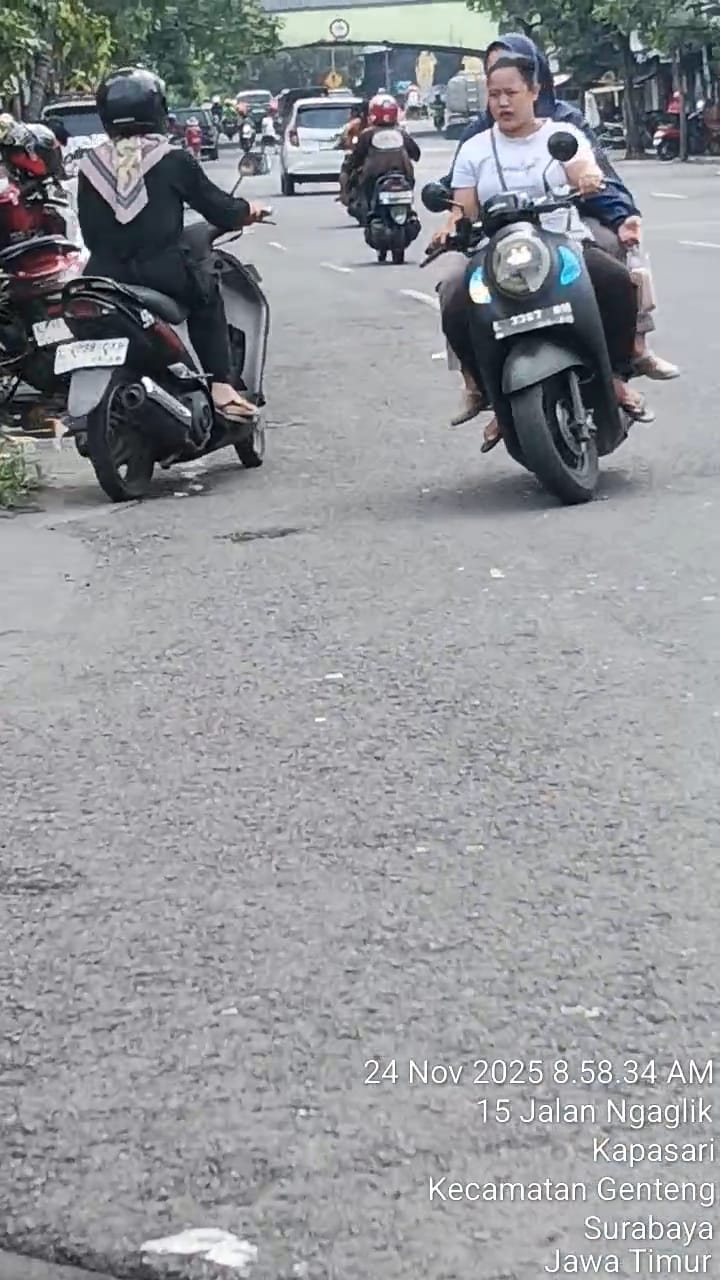 Sejumlah warga mengaku heran karena pada saat Operasi Zebra 2025 dilaksanakan secara nasional, justru di wilayah tersebut terlihat banyak pengendara melawan arus, tidak memakai helm, dan membawa penumpang lebih dari satu, namun tidak tampak personel Satlantas Polrestabes Surabaya yang melakukan penertiban.