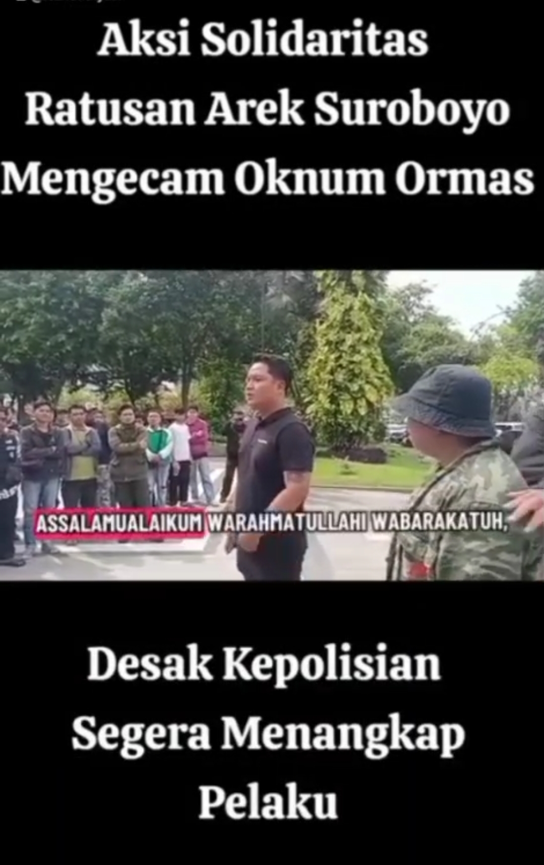 Salah satu perwakilan Arek Suroboyo, Purnama, menyampaikan kedatangan mereka bertujuan memberikan pesan tegas kepada ormas Madas serta kepada pemerintah.