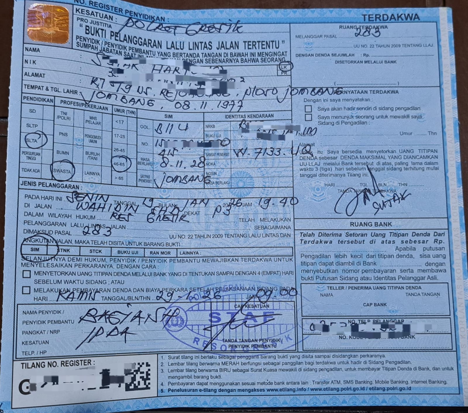Dari sisi penegakan hukum, Satlantas Polres Gresik langsung memberikan sanksi tilang kepada pengemudi yang bersangkutan.