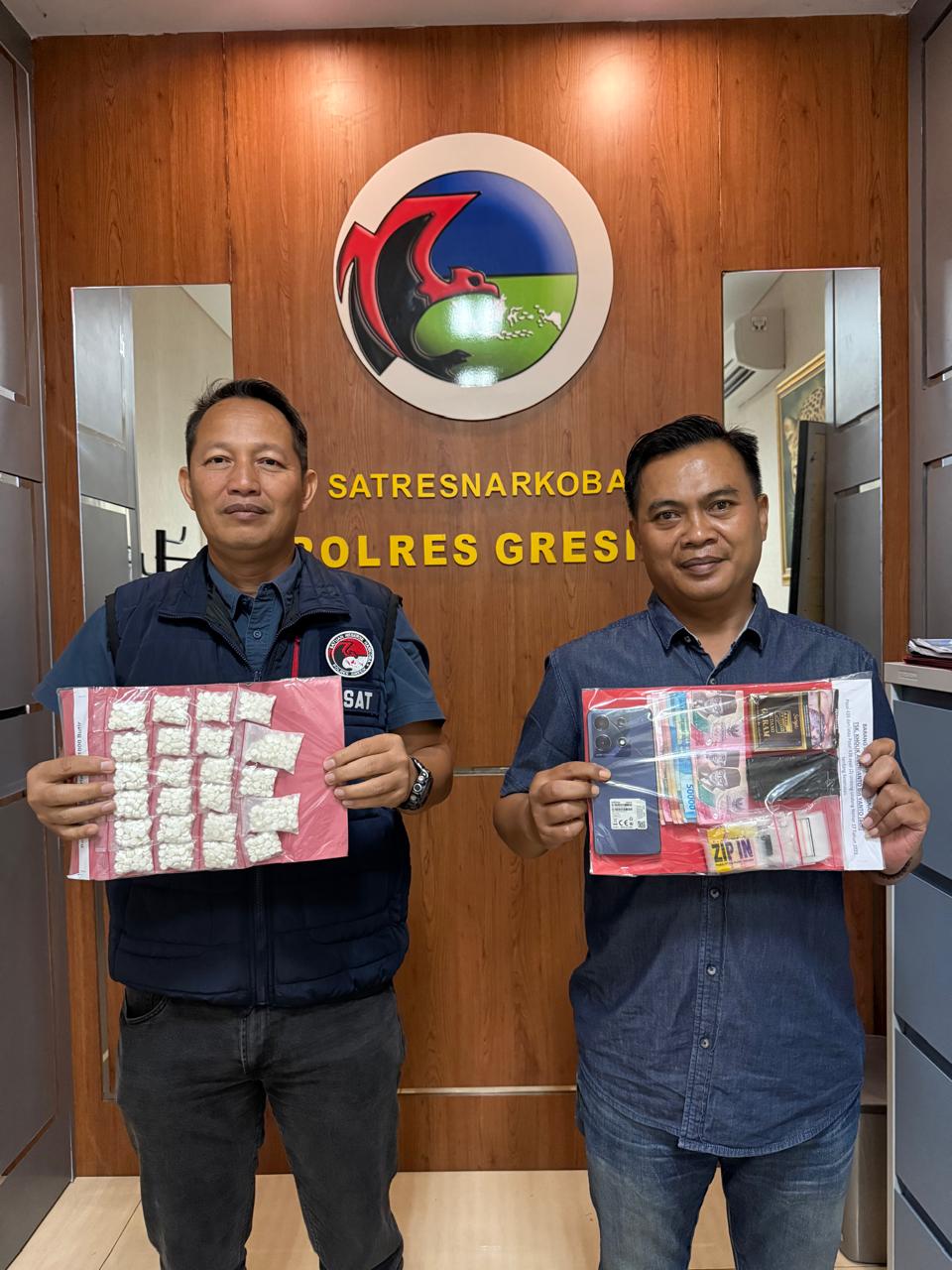 Kasat Resnarkoba Polres Gresik AKP Ahmad Yani mengatakan, penangkapan berawal dari informasi adanya peredaran pil logo LL yang dilakukan pelaku.
