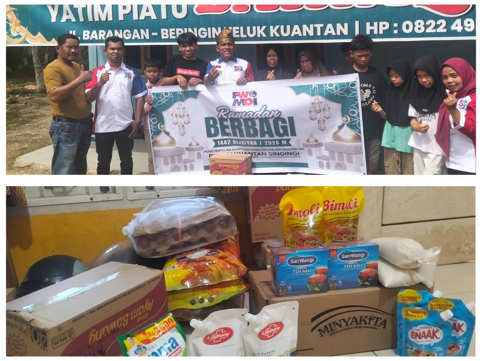 Metro24, Kuantan Singingi,- Perkumpulan Wartawan Media Oline Indonesia (PWMOI) Kuantan Singingi (Kuansing) melaksanakan kegiatan sosial dalam rangkah Ramadhan Berbagi di Panti Asuhan Yatim Piatu Baihaqi Umar, Desa Beringin Taluk, pada Rabu (18/3/2026).