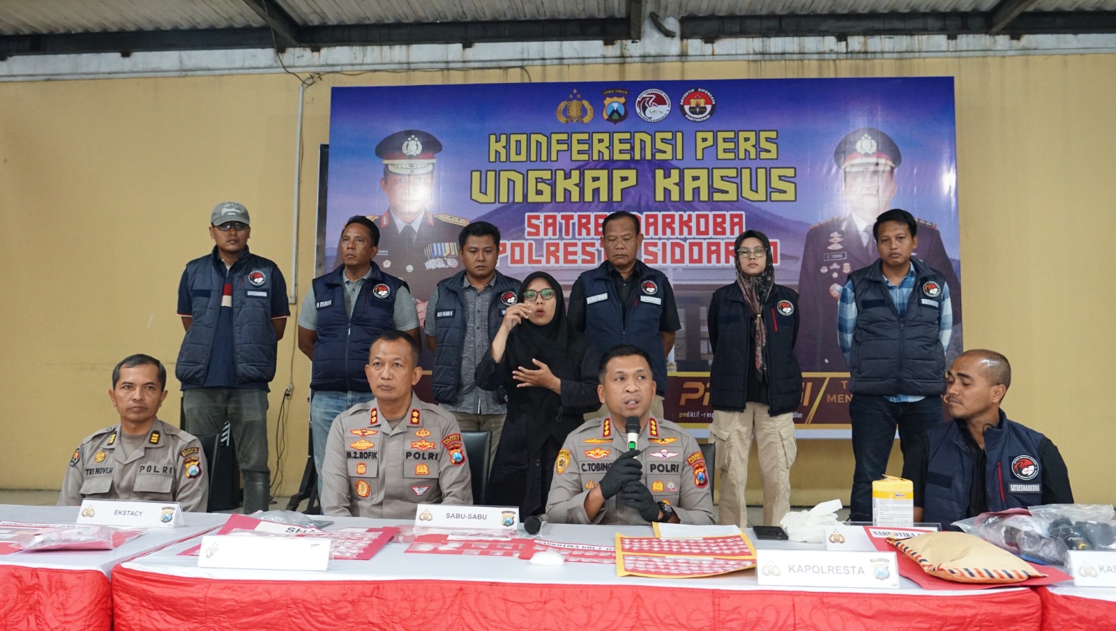 Kapolresta Sidoarjo Kombes. Pol. Christian Tobing pada konferensi pers Kamis (9/4/3026) menyampaikan, para tersangka yang diamankan berjenis kelamin laki-laki dan mayoritas berperan sebagai kurir maupun pengedar.