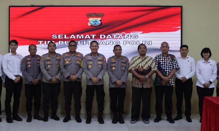 MANADO, Metro24.co.id – Kapolresta Manado beserta Pejabat Utama (PJU) Polresta menyambut kedatangan tim dari Pusat Penelitian dan Pengembangan (Puslitbang) Polri. Kunjungan ini merupakan bagian dari rangkaian kegiatan supervisi dan penelitian yang bertujuan untuk meningkatkan kualitas pelayanan kepolisian di wilayah Manado, Senijn (18/3/2024).