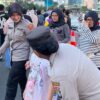 Mendadak pria tersebut menendang seseorang yang terlihat dipeluk seorang ibu yang diduga pelaku tabrakan. Aksi tersebut membuat warga yang melihat kejadian itu bereaksi.